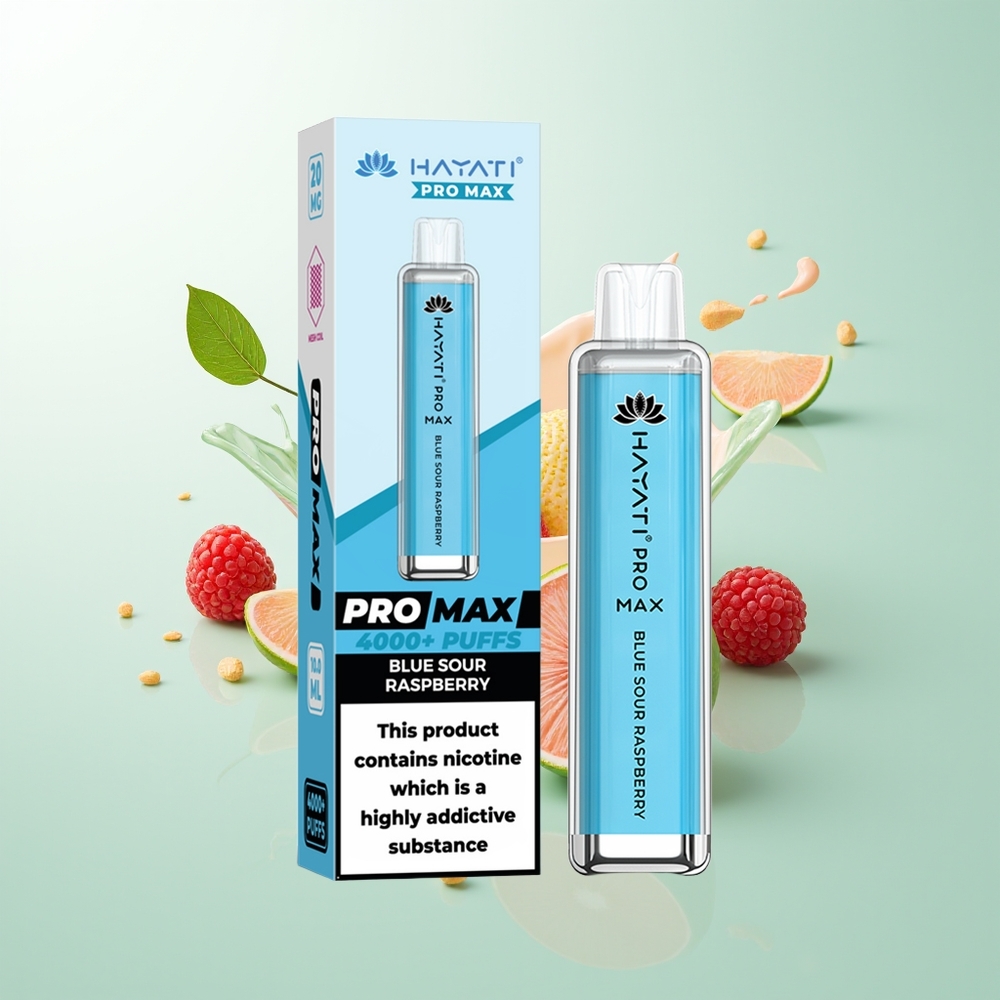 Hayati Pro Max 4000 Puffs Wegwerp Vape Blauw Zure Framboos Met 1400mAh Oplaadbare Accu en LED-licht