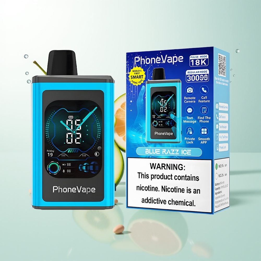JNR PhoneVape 30000 pufs Oplaadbaar Scherm Turbo Blauwe Framboos Ijs