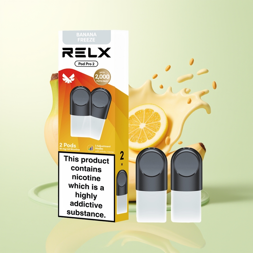 RELX Pod Pro 2 600 Puffs 1.9ml 3 Voltage Modus Dessert-Banaan Ijs