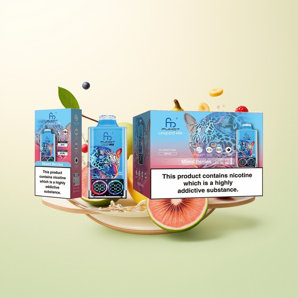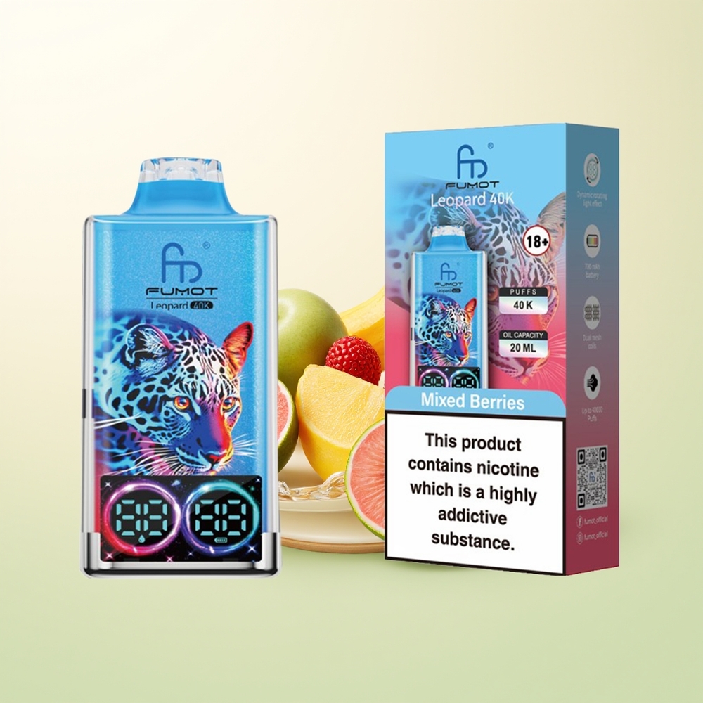 Fumot Leopard 40K Puffs 5% Nicotine 700mAh Dual Mesh Type-C Oplaadbaar Digitaal Display Gemengde Bessen Wegwerp Vape