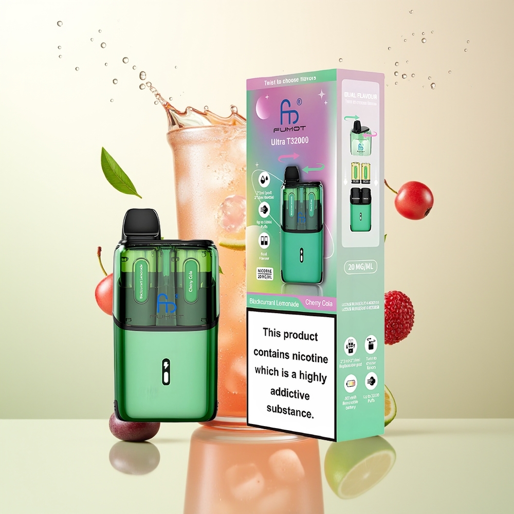Fumot Ultra T32000 32000 Draadvrije Vape Dubbele Vulling Type-C Zwarte Bes Limonade – Kersencola