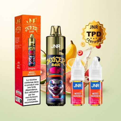 JNR Joker 24000 Puffs 2+10ml Navulbare Side Refill Zichtbare Vloeistofniveaus 800mAh Ademend Licht Type-C 2% Nicotine Gemengde Bessen