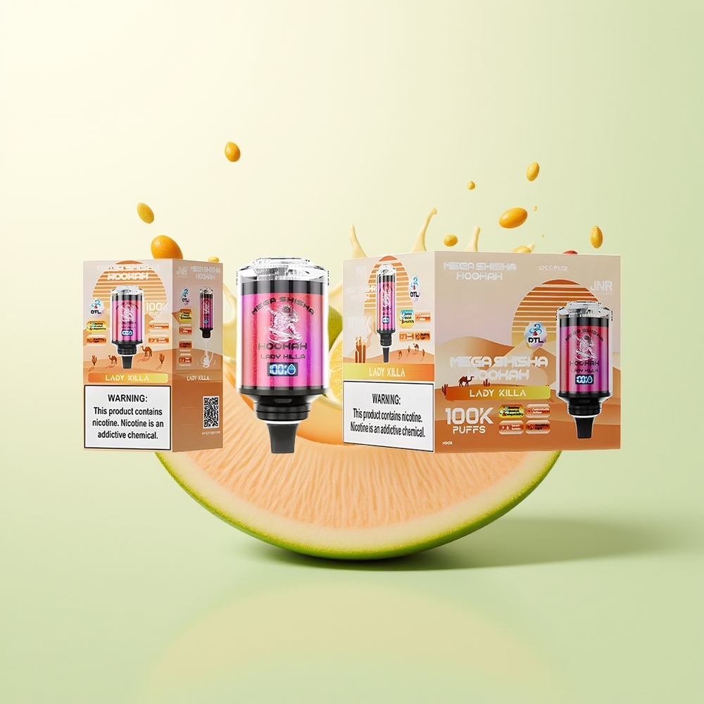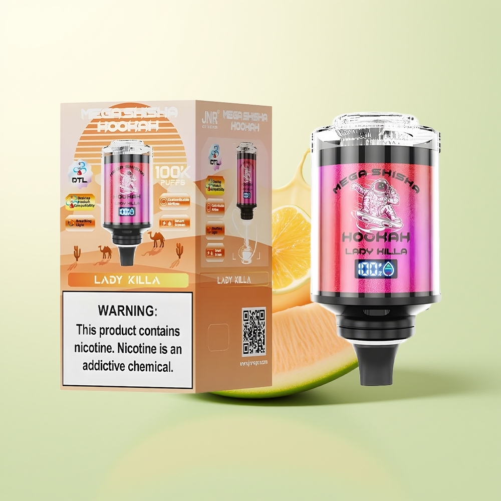 JNR Mega Shisha Hookah 100K Desktop Lady Killa 2200mAh Type-C 60ml 2% Nicotine Ademhalingslicht Interactief Scherm Instelbare Luchtstroom