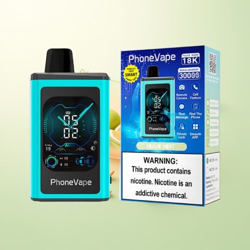 JNR PhoneVape 30000 pufs Oplaadbare Turbo Luchtstroom App Bestuurbaar Miami Munt